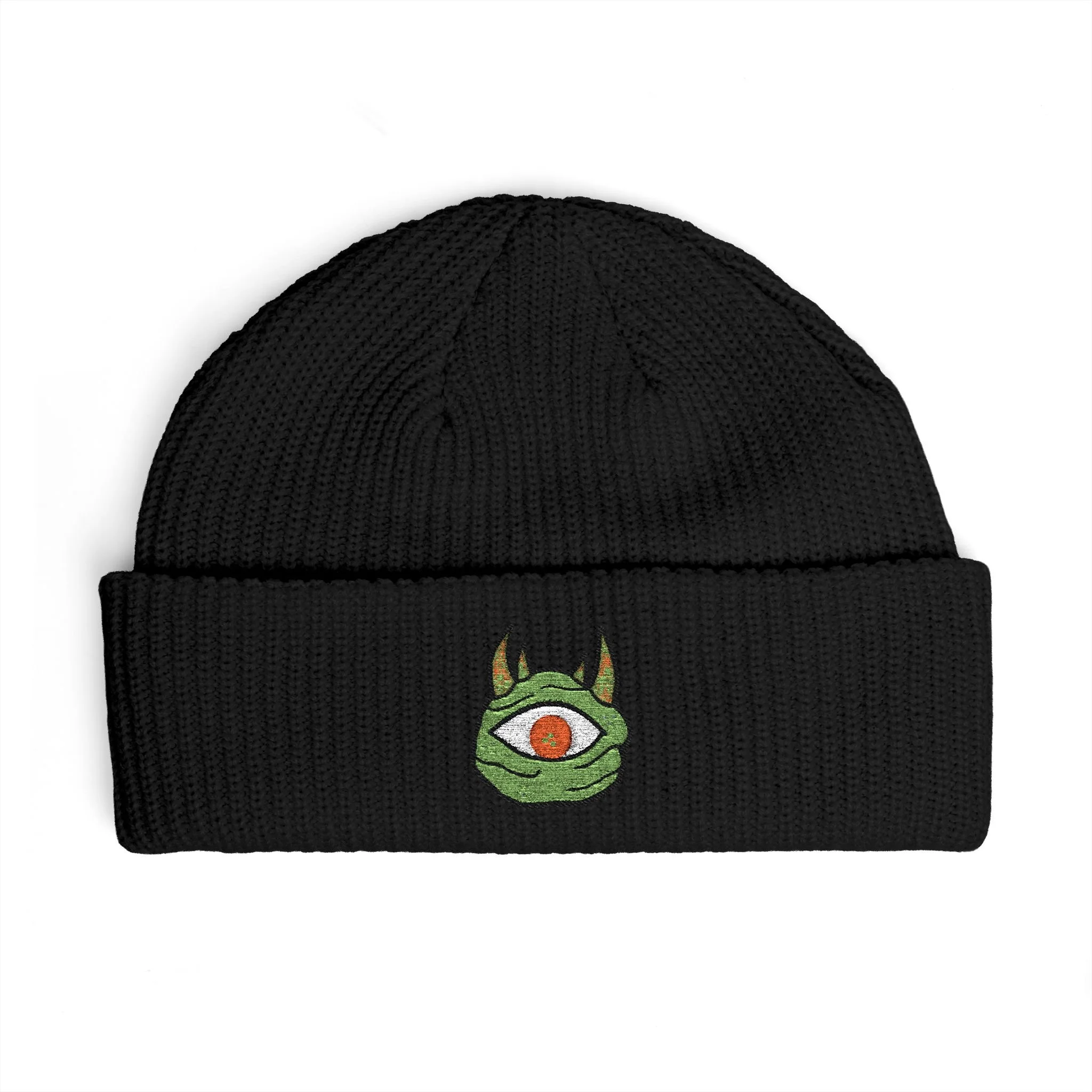 Embroidered Cyclops Monster Cuff Beanie — Cute Horror Knit Hat